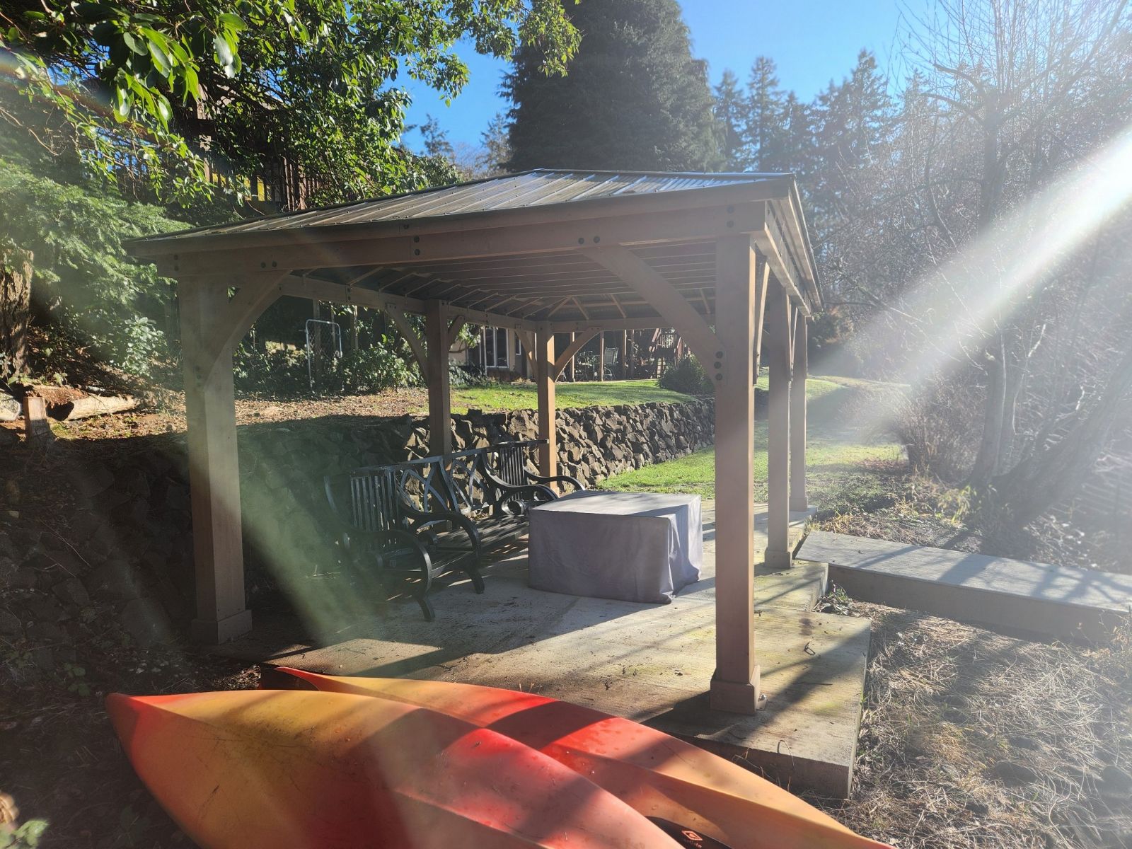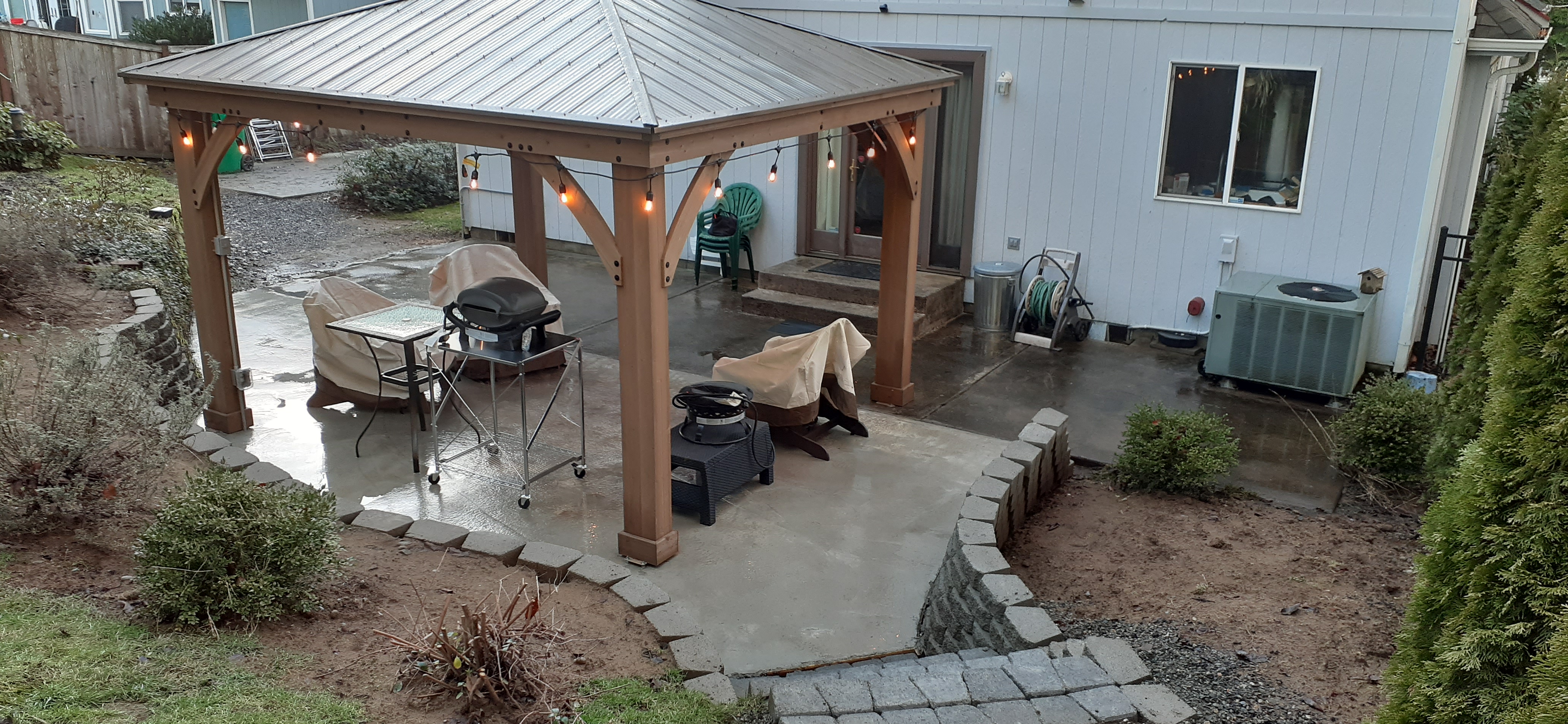 Gazebo, Concrete Pad, Retaining Wall & Stairs